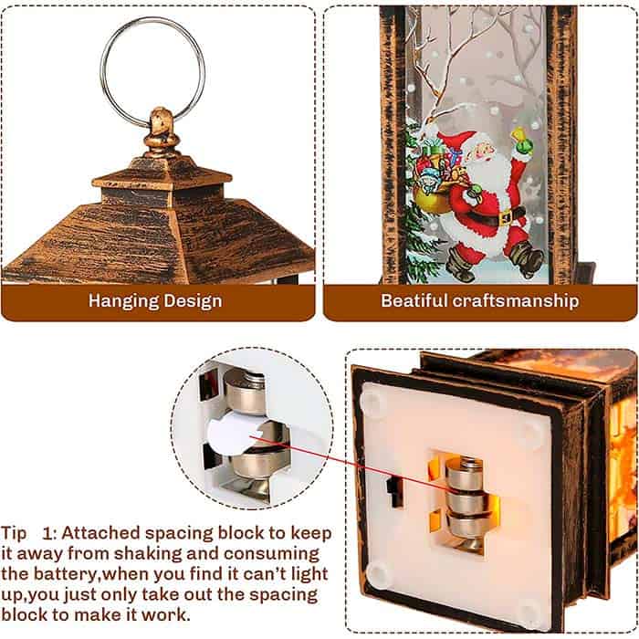 Piękny świąteczny lampion działa poprzez zmianę różnych kolorów światła, gdy brokat wiruje!
