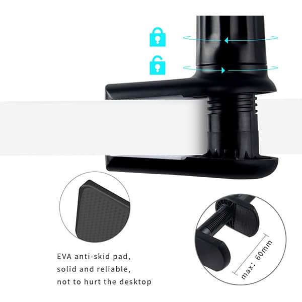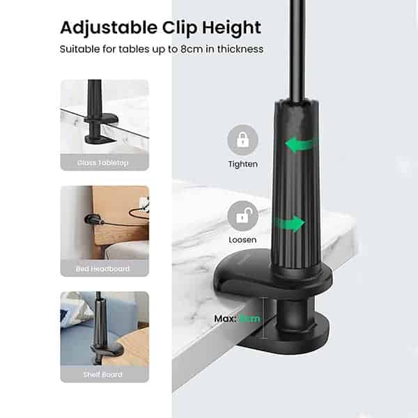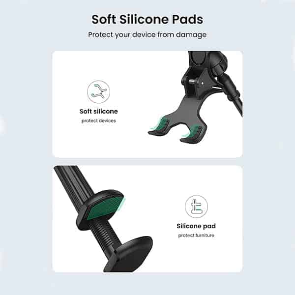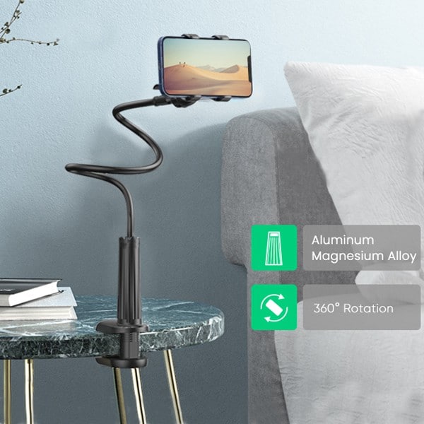 Stabilny uchwyt nadaje się do telefonów komórkowych, nawigacji, aparatów fotograficznych i innych urządzeń. Uchwyt można łatwo umieścić na krawędzi stołu lub półki. Urządzenie zapewnia pewny chwyt i jednocześnie nie pozostawia śladów ani rys na telefonie komórkowym.