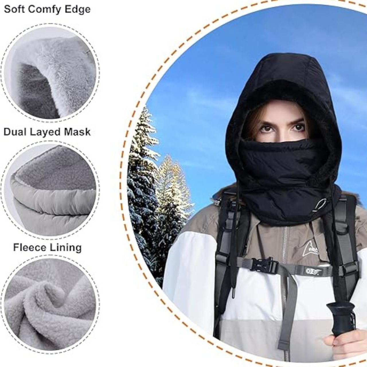 ❄️ 3w1 czapka, szalik i maska 💨 Odporna na wiatr i wilgoć 🔥 Podwójna ochrona termiczna 🎿 Idealna do zimowych aktywności 🧣 Wygodne i miękkie wnętrze