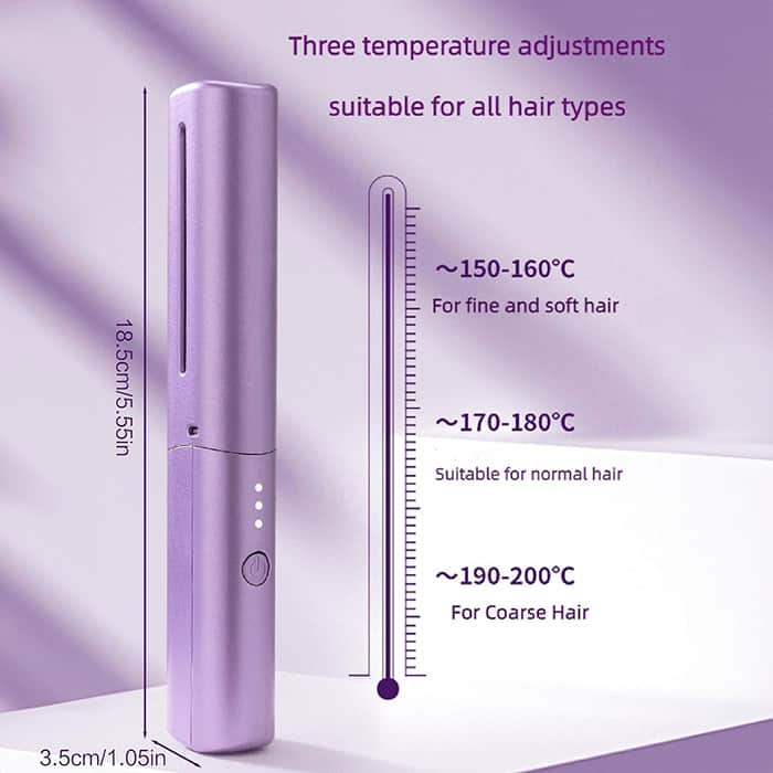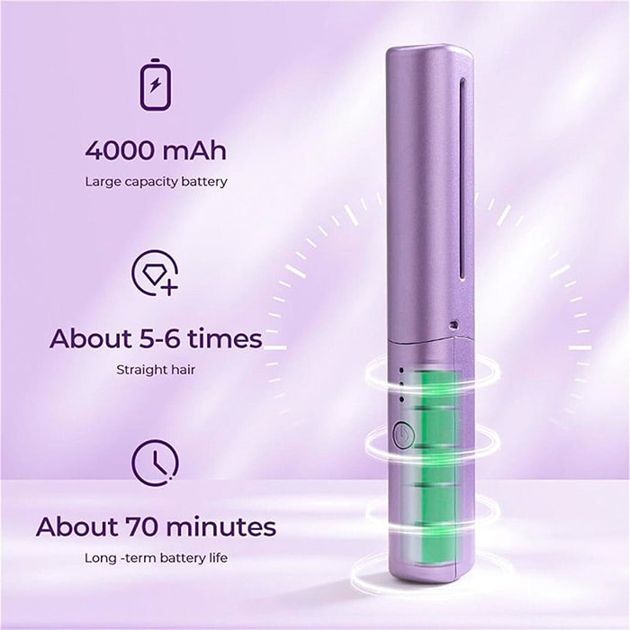 Możesz używać przenośnej prostownicy do włosów wszędzie, ponieważ nie potrzebujesz żadnego prądu ani kabli do jej działania! Wystarczy naładować żelazko za pomocą dołączonego kabla USB i jest gotowe do użycia!